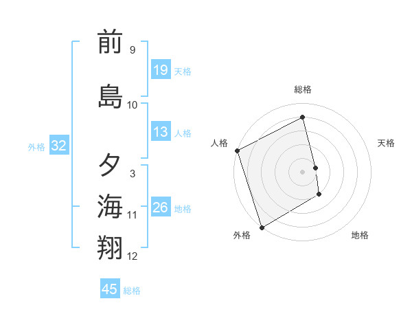 前島 夕海翔さんを姓名の画数から五運を鑑定