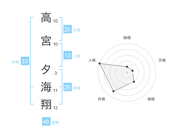 高宮 夕海翔さんを姓名の画数から五運を鑑定