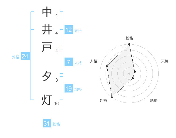 中井戸 夕灯さんを姓名の画数から五運を鑑定