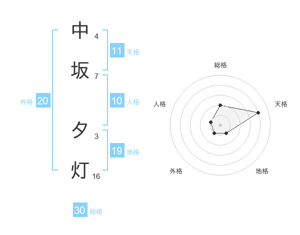 中坂 夕灯さんを姓名の画数から五運を鑑定