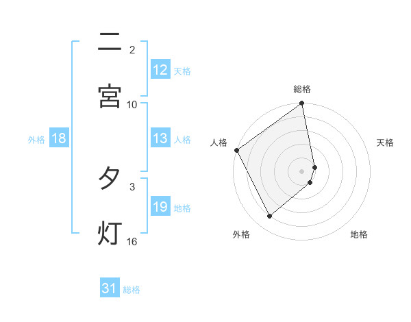 二宮 夕灯さんを姓名の画数から五運を鑑定