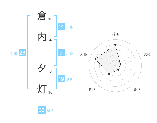 倉内 夕灯さんの総格は33画の4点!