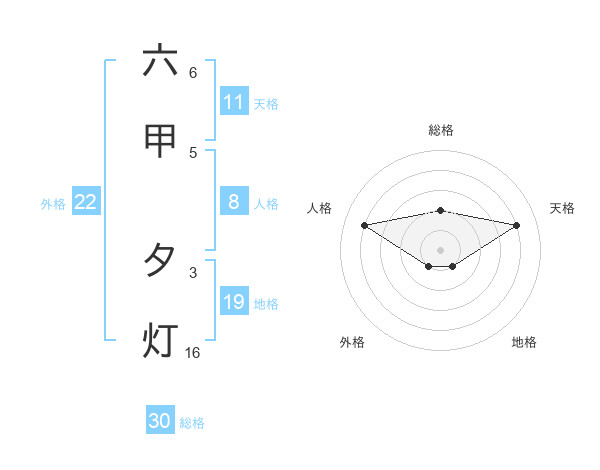 六甲 夕灯さんを姓名の画数から五運を鑑定