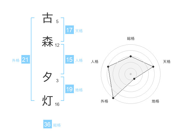 古森 夕灯さんの天格は17画の4点!
