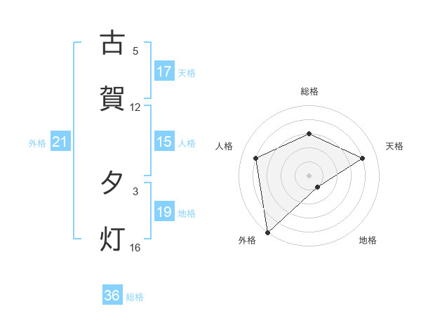 古賀 夕灯さんの天格は17画の4点!