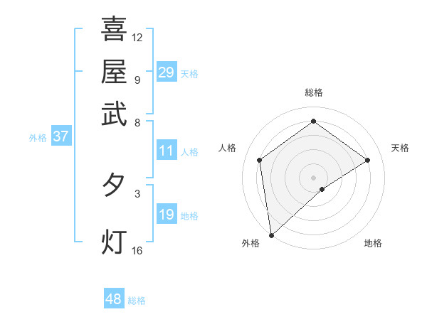喜屋武 夕灯さんの外格は37画の5点!