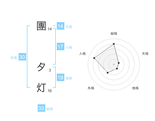 團 夕灯さんの総格は33画の4点!