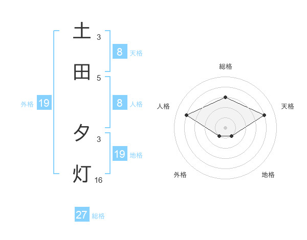 土田 夕灯さんを姓名の画数から五運を鑑定