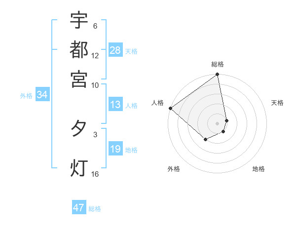 宇都宮 夕灯さんを姓名の画数から五運を鑑定