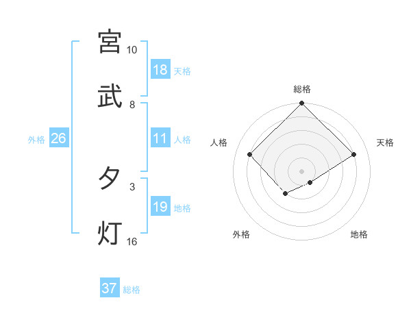 宮武 夕灯さんを姓名の画数から五運を鑑定