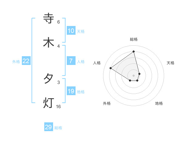 寺木 夕灯さんの総格は29画の4点!