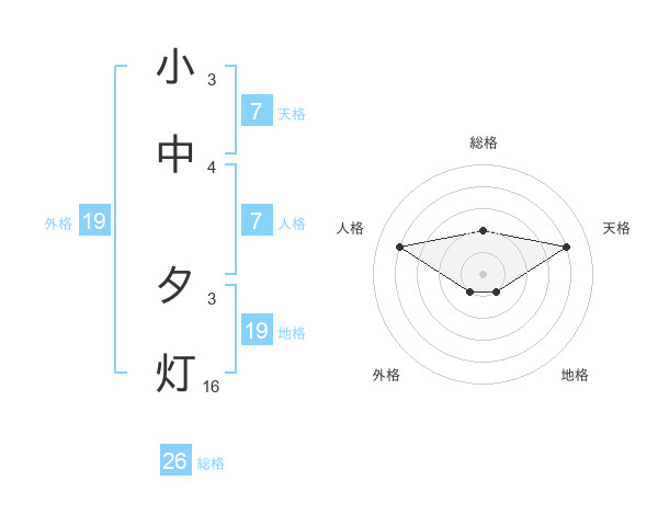 小中 夕灯さんの総格は26画の2点!