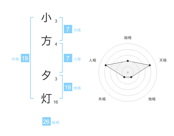 小方 夕灯さんを姓名の画数から五運を鑑定