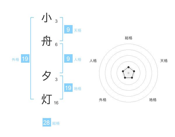 小舟 夕灯さんの総格は28画の1点!