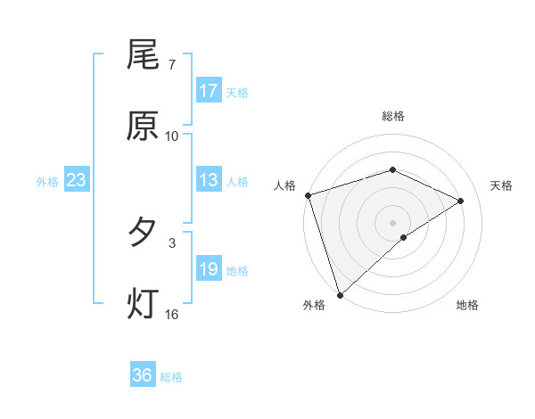 尾原 夕灯さんの天格は17画の4点!