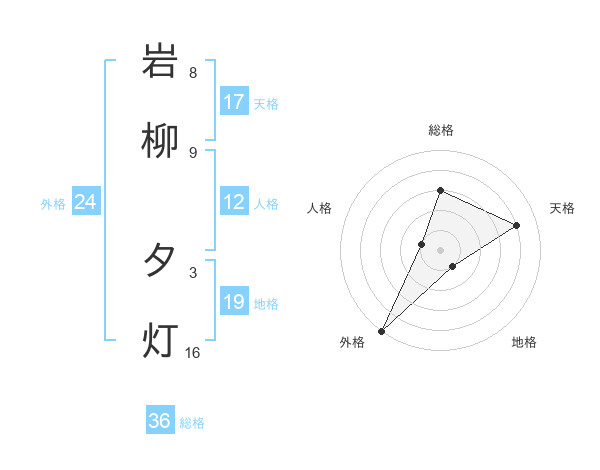 岩柳 夕灯さんを姓名の画数から五運を鑑定