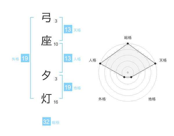 弓座 夕灯さんを姓名の画数から五運を鑑定