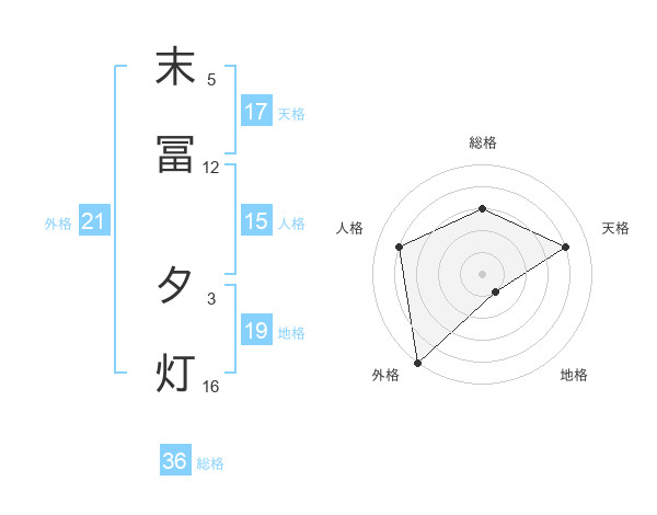 末冨 夕灯さんの外格は21画の5点!