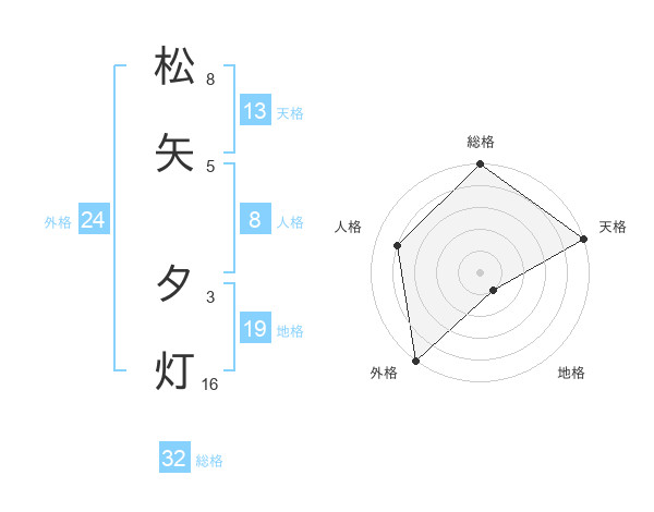 松矢 夕灯さんの総格は32画の5点!