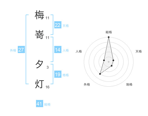 梅嵜 夕灯さんの総格は41画の5点!
