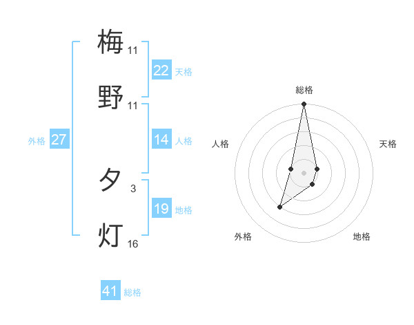 梅野 夕灯さんの総格は41画の5点!