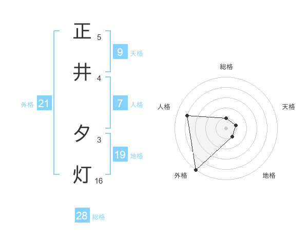 正井 夕灯さんを姓名の画数から五運を鑑定