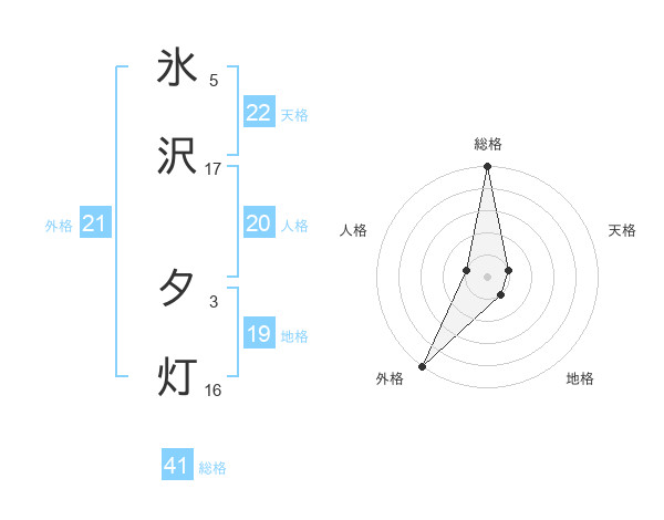 氷沢 夕灯さんの外格は21画の5点!