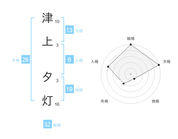 津上 夕灯さんを姓名の画数から五運を鑑定