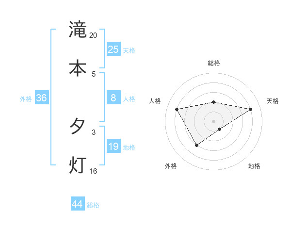滝本 夕灯さんを姓名の画数から五運を鑑定