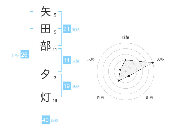 矢田部 夕灯さんを姓名の画数から五運を鑑定