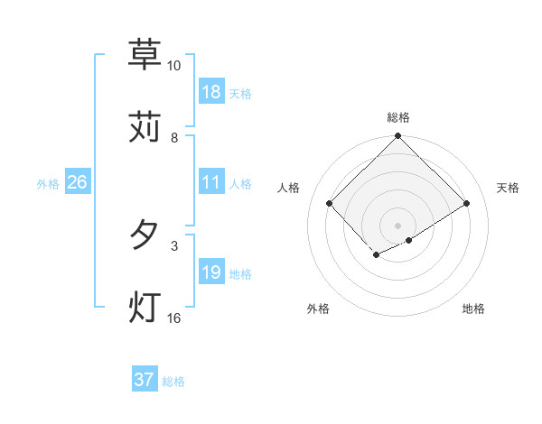 草苅 夕灯さんを姓名の画数から五運を鑑定
