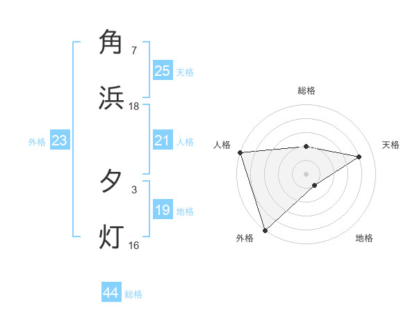角浜 夕灯さんの外格は23画の5点!