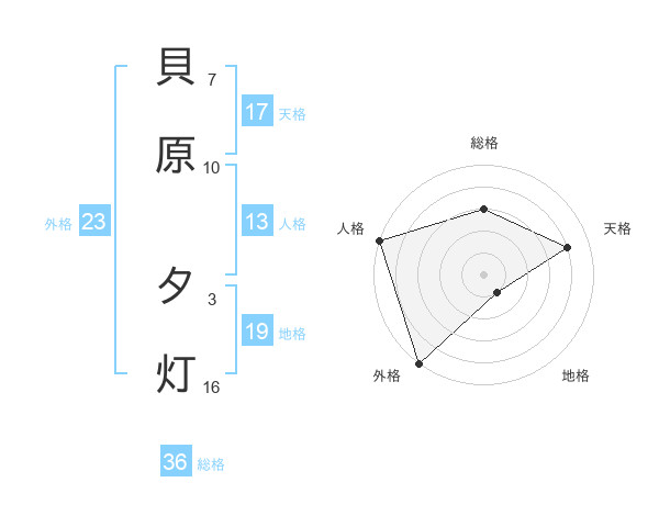 貝原 夕灯さんを姓名の画数から五運を鑑定