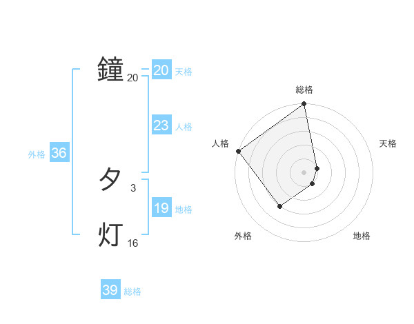 鐘 夕灯さんの総格は39画の5点!