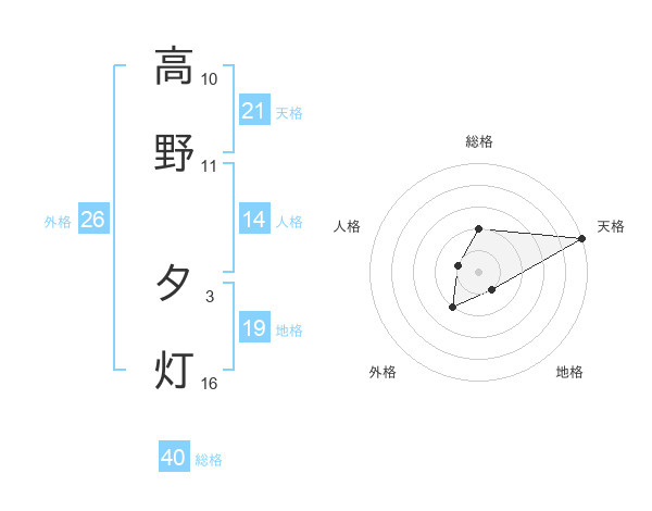 高野 夕灯さんを姓名の画数から五運を鑑定