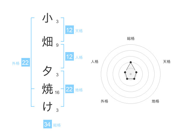 小畑 夕焼けさんの地格は22画の1点!