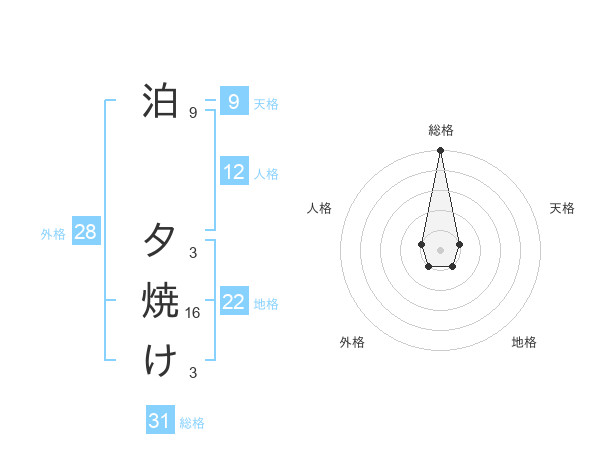 泊 夕焼けさんの総格は31画の5点!