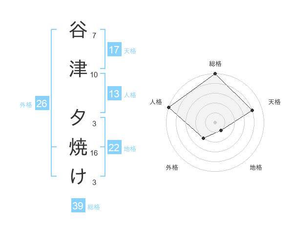 谷津 夕焼けさんを姓名の画数から五運を鑑定