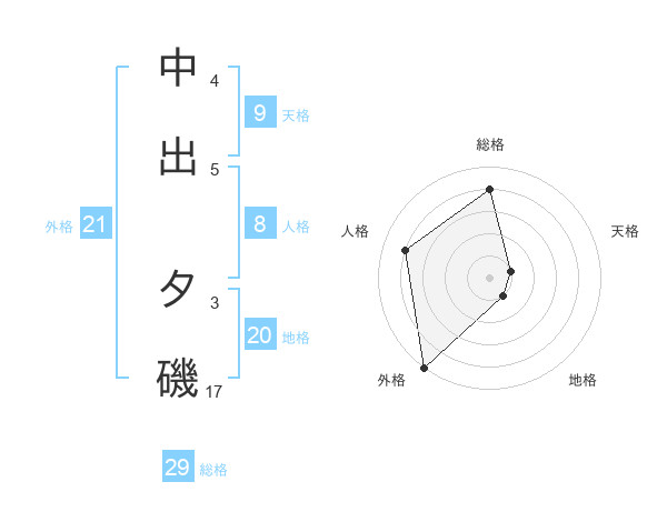 中出 夕磯さんの外格は21画の5点!