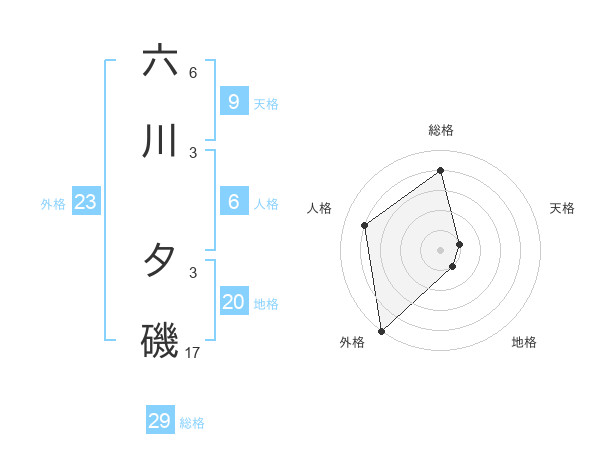 六川 夕磯さんの外格は23画の5点!