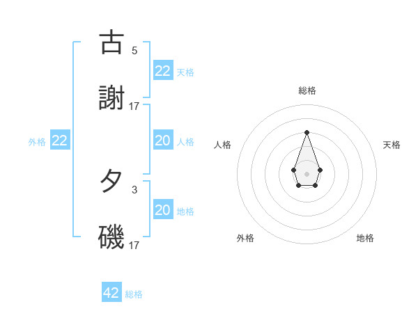 古謝 夕磯さんの外格は22画の1点!