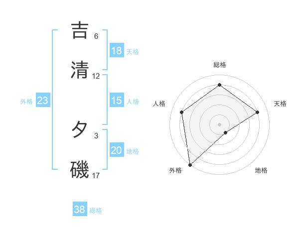 吉清 夕磯さんの総格は38画の4点!
