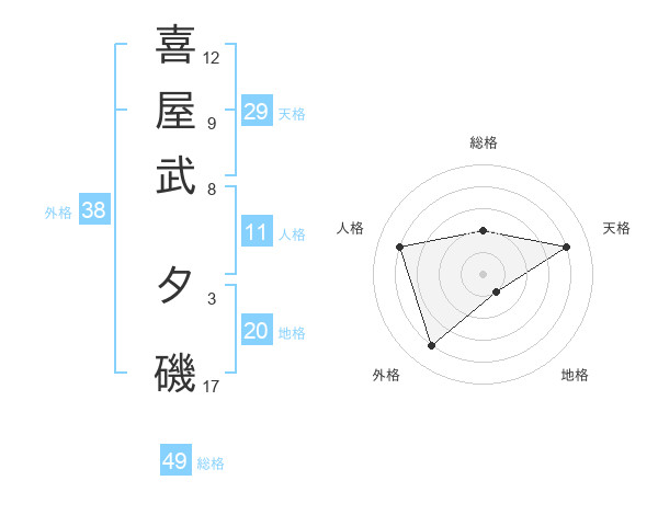 喜屋武 夕磯さんを姓名の画数から五運を鑑定