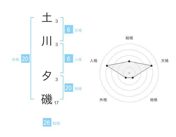 土川 夕磯さんを姓名の画数から五運を鑑定