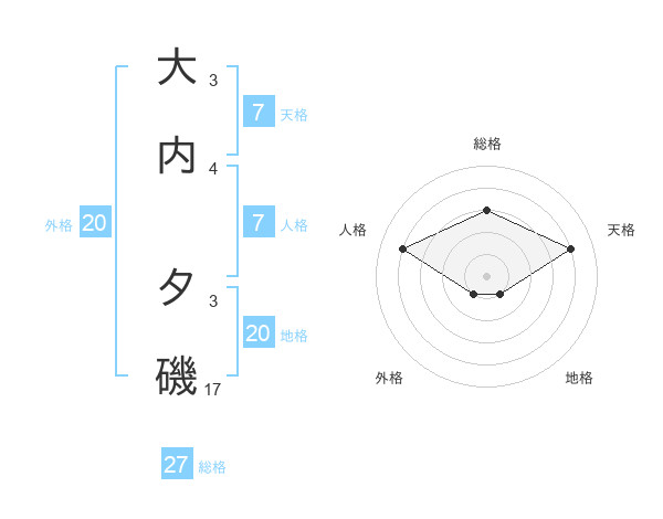 大内 夕磯さんを姓名の画数から五運を鑑定