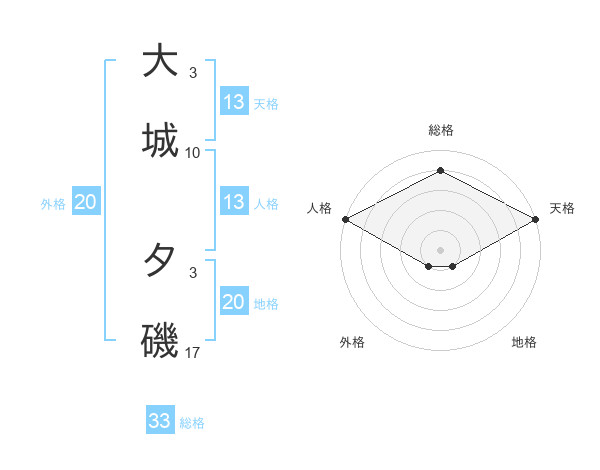 大城 夕磯さんの天格は13画の5点!