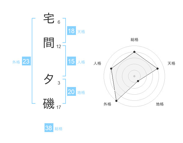 宅間 夕磯さんの総格は38画の4点!