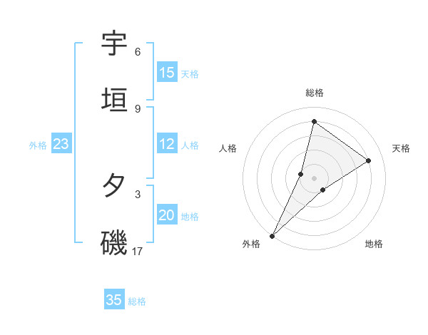 宇垣 夕磯さんの総格は35画の4点!