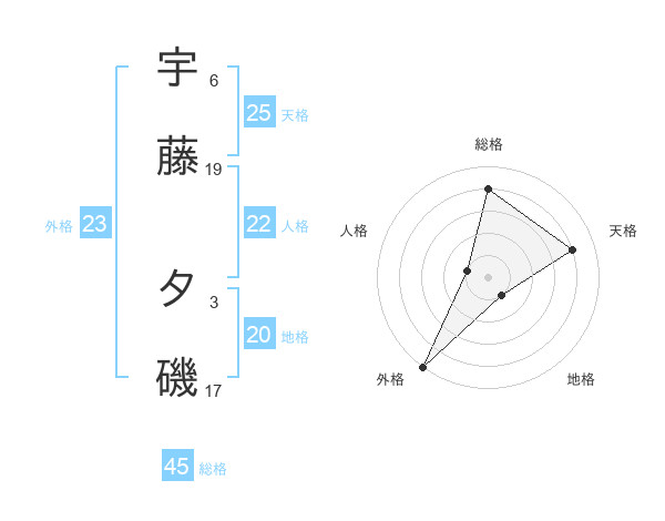 宇藤 夕磯さんを姓名の画数から五運を鑑定
