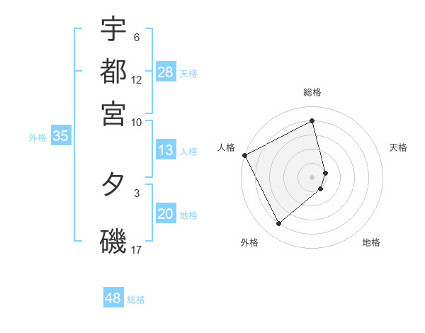 宇都宮 夕磯さんを姓名の画数から五運を鑑定